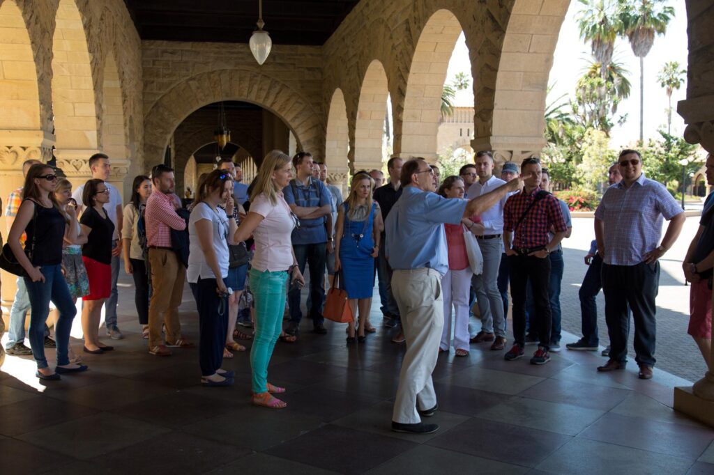 On July 5, 2015, participants of the 9th Edition of the TOP 500 Innovators Science Management Commercialization Program were welcomed during a formal lunch by prof. Piotr D. Moncarz, co-founder and chairman, Mr. Jerzy Orkiszewski, president, and Mr. Stan Lewandowski, director and secretary of US-Polish Trade Council.  The TOP 500 Innovators Program was instituted by the Polish Ministry of Science and Higher Education in hopes of bridging the gap between academia and business.  On July 5th, the TOP 500 Innovators also visited Stanford University guided by prof. Moncarz who shared interesting tidbits of Stanford’s history with the group.